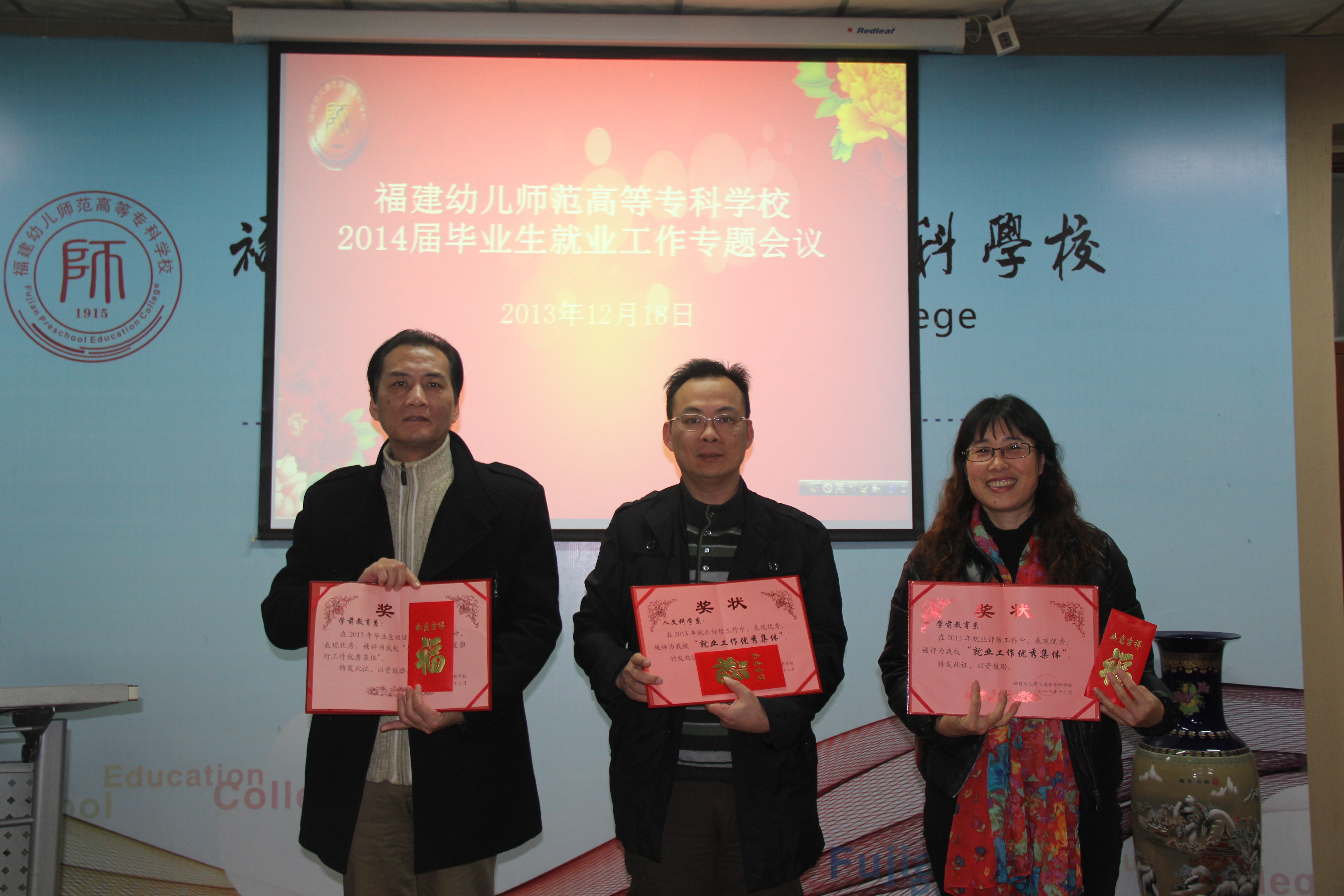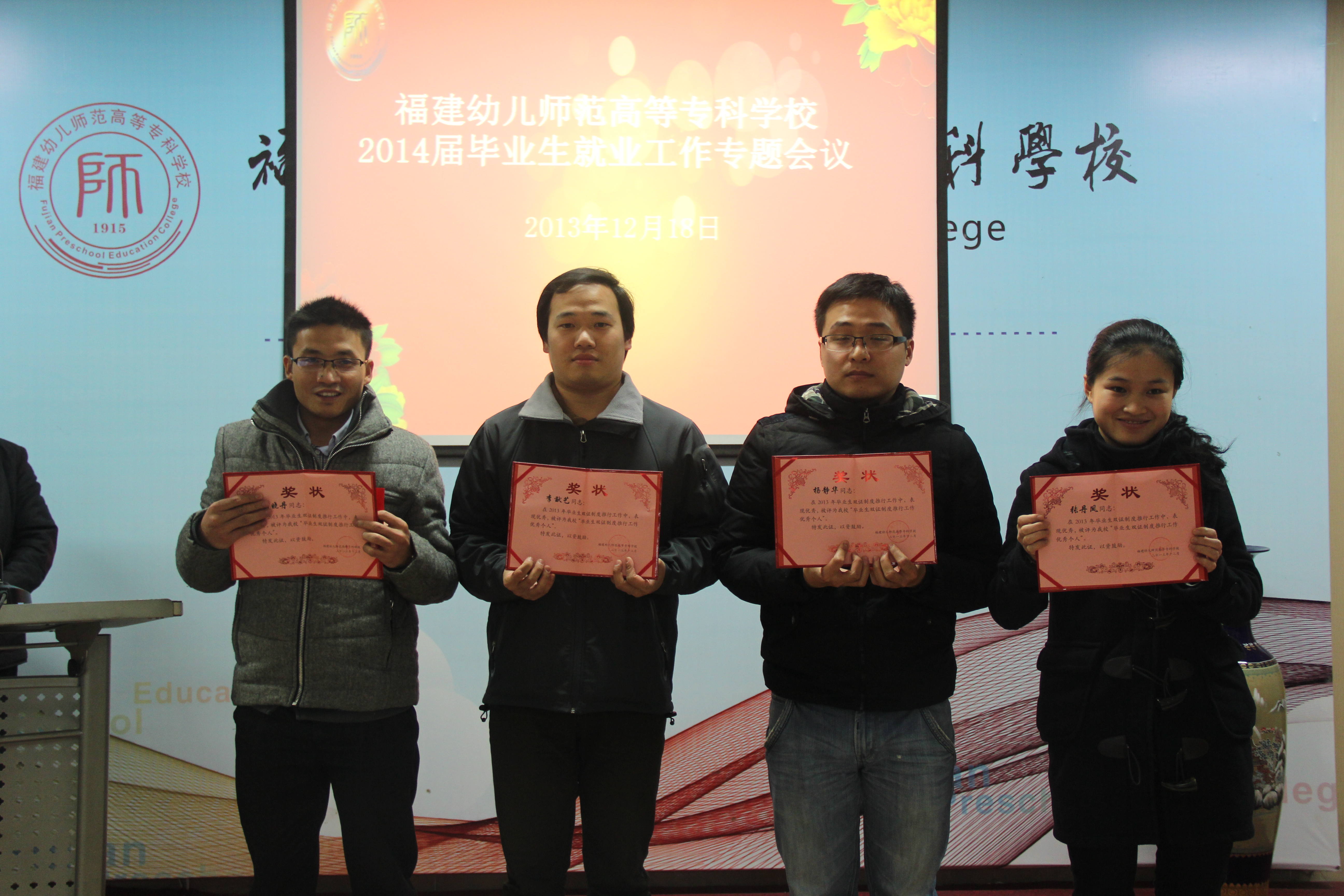 會議由學工部伊文婷副部長主持,會上我校招生就業(yè)辦陳秉龍主任全面總結了2013年度學校的就業(yè)工作,學工部吳金華部長對2013年就業(yè)評估情況進行反饋,王福陽副書記宣讀了學校的表彰決定,林雨書記作了重要講話。本次會上,我系以總評估成績第一名喜獲"就業(yè)工作評估先進集體",同時獲"畢業(yè)生雙證制度推行工作優(yōu)秀集體"等兩項榮譽,系輔導員鄭琦獲"畢業(yè)生就業(yè)工作先進個人",李猷藝、林家好獲"畢業(yè)生雙證制度推行工作優(yōu)秀個人"。