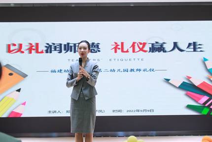 教書育人的園丁,不僅是傳道解惑的師者,也是身正為范的楷模。為了進(jìn)一步提高我園教師的禮儀修養(yǎng),樹立端莊、得體的幼兒教師形象,特邀專業(yè)的禮學(xué)教師——鄭妤婷老師進(jìn)行了《以禮潤(rùn)師德 禮儀贏人生》的專題培訓(xùn),以"師德、師心、師行"為出發(fā)點(diǎn),結(jié)合幼師的工作實(shí)際,展示了在站姿、坐姿、蹲姿等方面應(yīng)注重的禮儀規(guī)范,現(xiàn)場(chǎng)聆聽的老師們收獲頗豐。