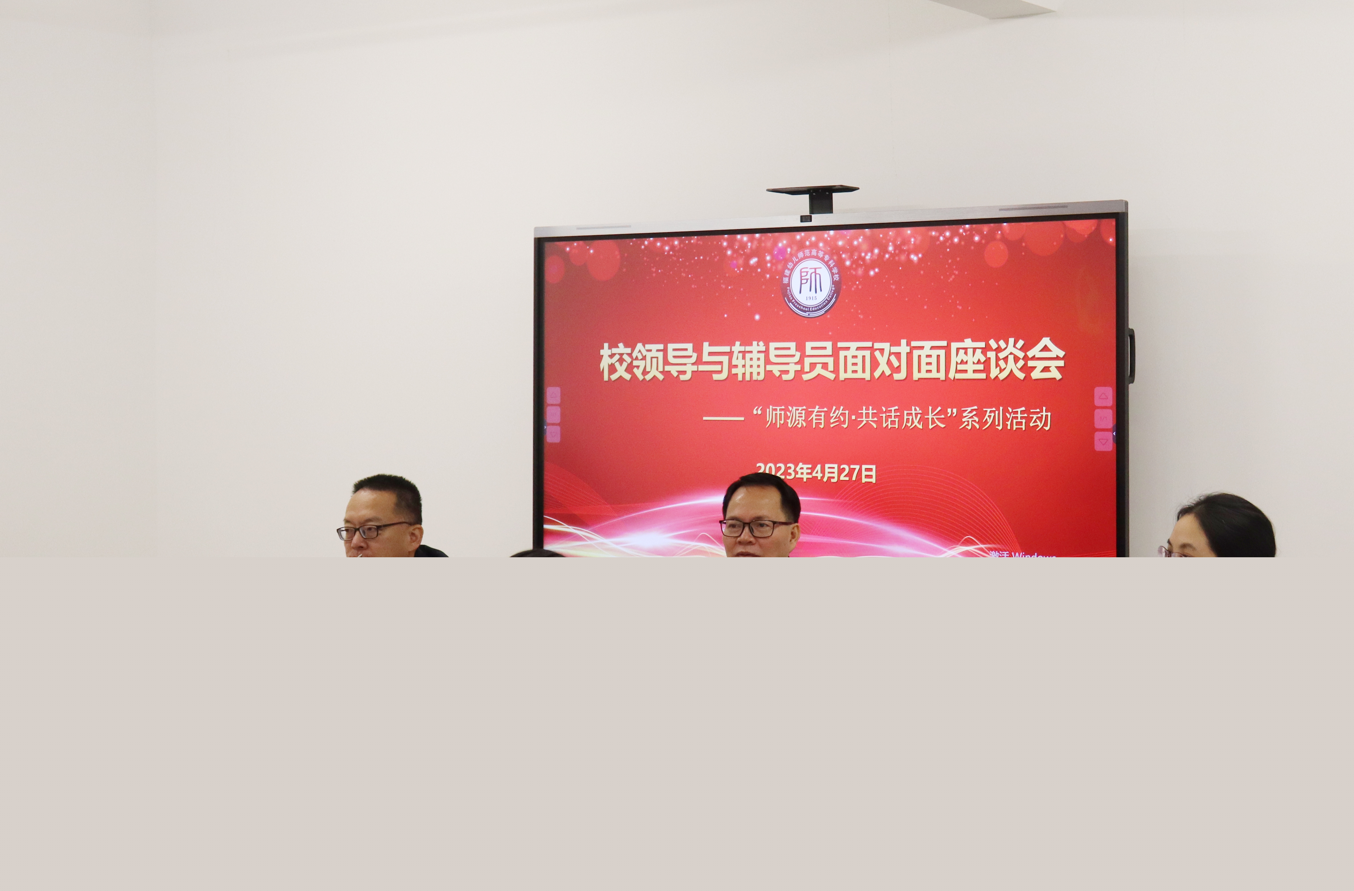 (圖為校領(lǐng)導(dǎo)與輔導(dǎo)員"面對(duì)面"座談會(huì)現(xiàn)場)