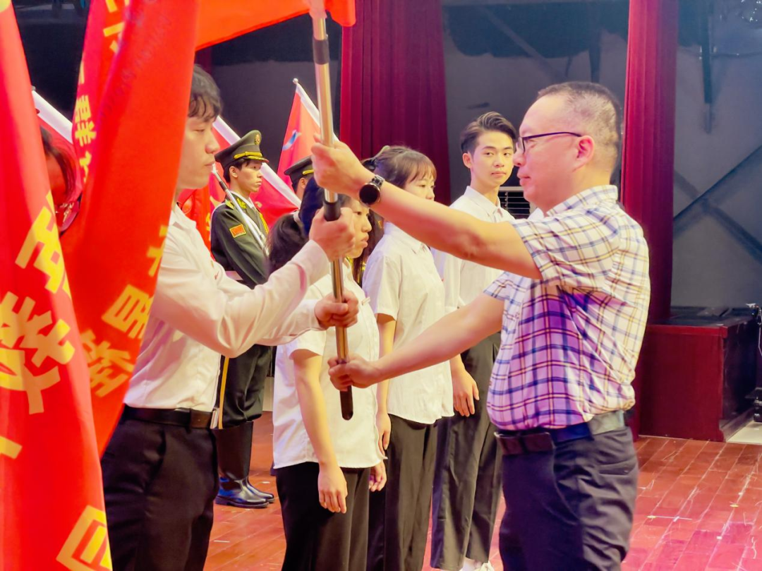 (校黨委副書記鄒雄偉為校重點團隊授旗)