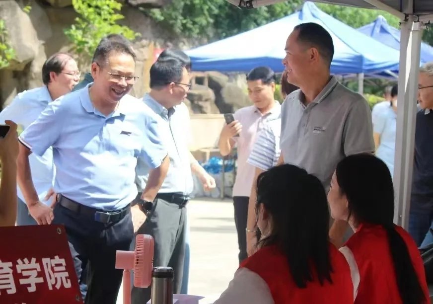 (圖為校黨委副書記、校長(zhǎng)林偉川與迎新工作人員親切交流)
