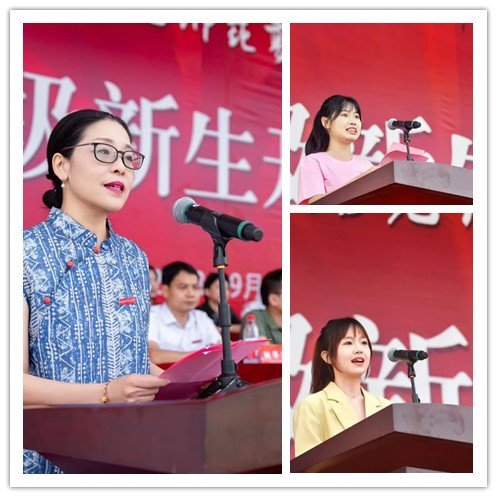 (圖為教師代表、在校生和新生代表發(fā)言)
