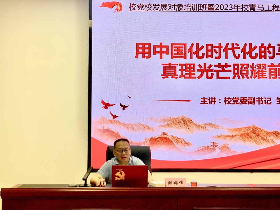 為深入開展學(xué)習(xí)貫徹習(xí)近平新時代中國特色社會主義思想主題教育,引導(dǎo)廣大青年堅持對馬克思主義的堅定信仰、對中國特色社會主義的堅定信念、對實現(xiàn)中華民族偉大復(fù)興中國夢的堅定信心,堅定"四個自信"。5月31日下午,校黨校發(fā)展對象培訓(xùn)班暨2023年校青馬工程培訓(xùn)班專題培訓(xùn)會在校部114會議室舉行。校黨委副書記鄒雄偉為全體學(xué)員帶來專題講座——《用中國化時代化的馬克思主義真理光芒照耀前行之路》。校黨校發(fā)展對象培訓(xùn)班、校青馬工程培訓(xùn)班全體學(xué)員參加本次培訓(xùn),培訓(xùn)會由校團(tuán)委書記胡華榮主持。