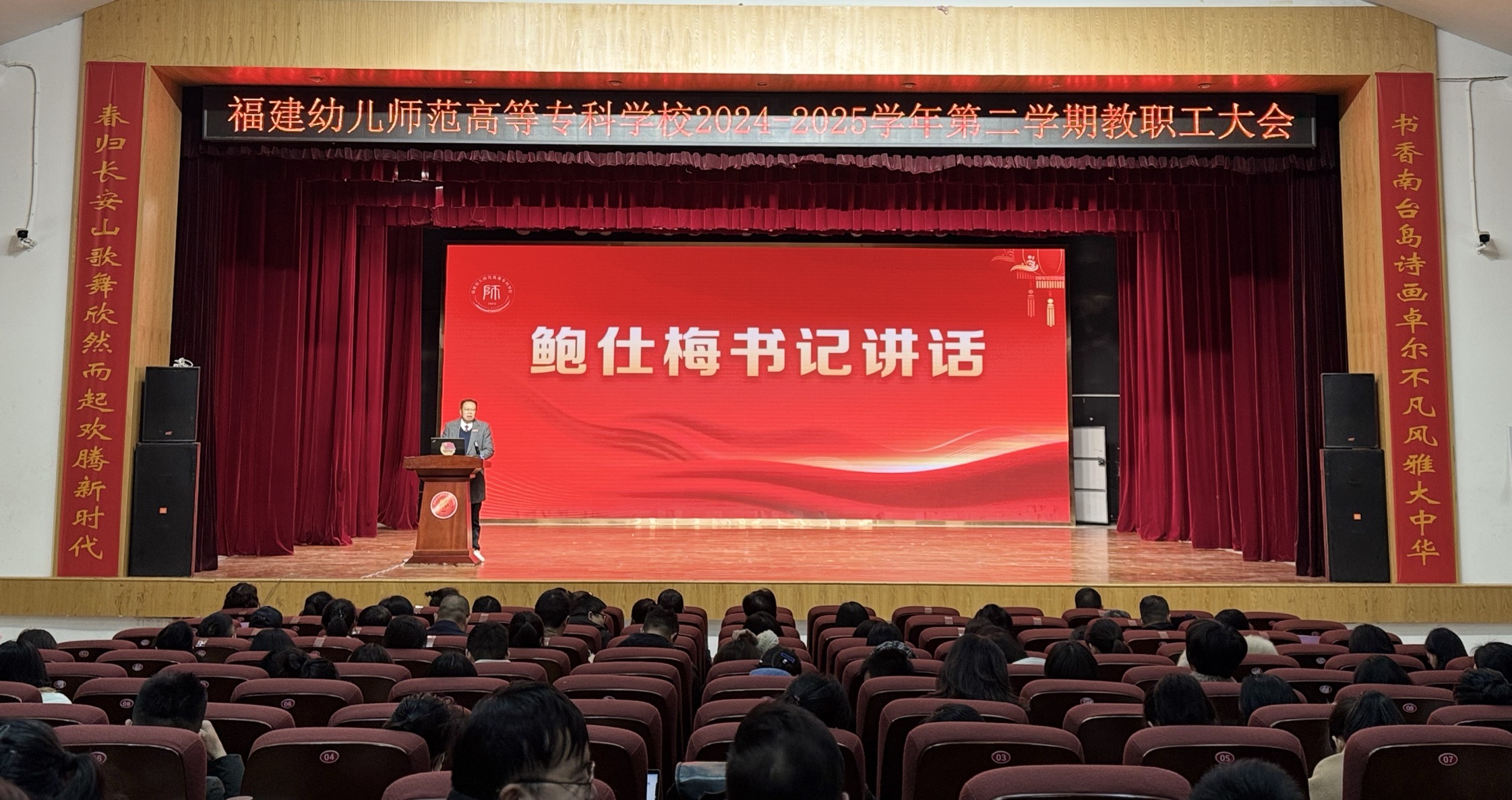 2月15日上午,我校在倉山校區(qū)禮堂召開2024-2025學(xué)年第二學(xué)期教職工大會。校黨委書記鮑仕梅,校黨委副書記、校長林偉川,校領(lǐng)導(dǎo)鄒雄偉、謝翠紅、謝福仁、陳鳳玉出席會議,近500名教職員工參加大會。會議由校黨委副書記鄒雄偉主持。