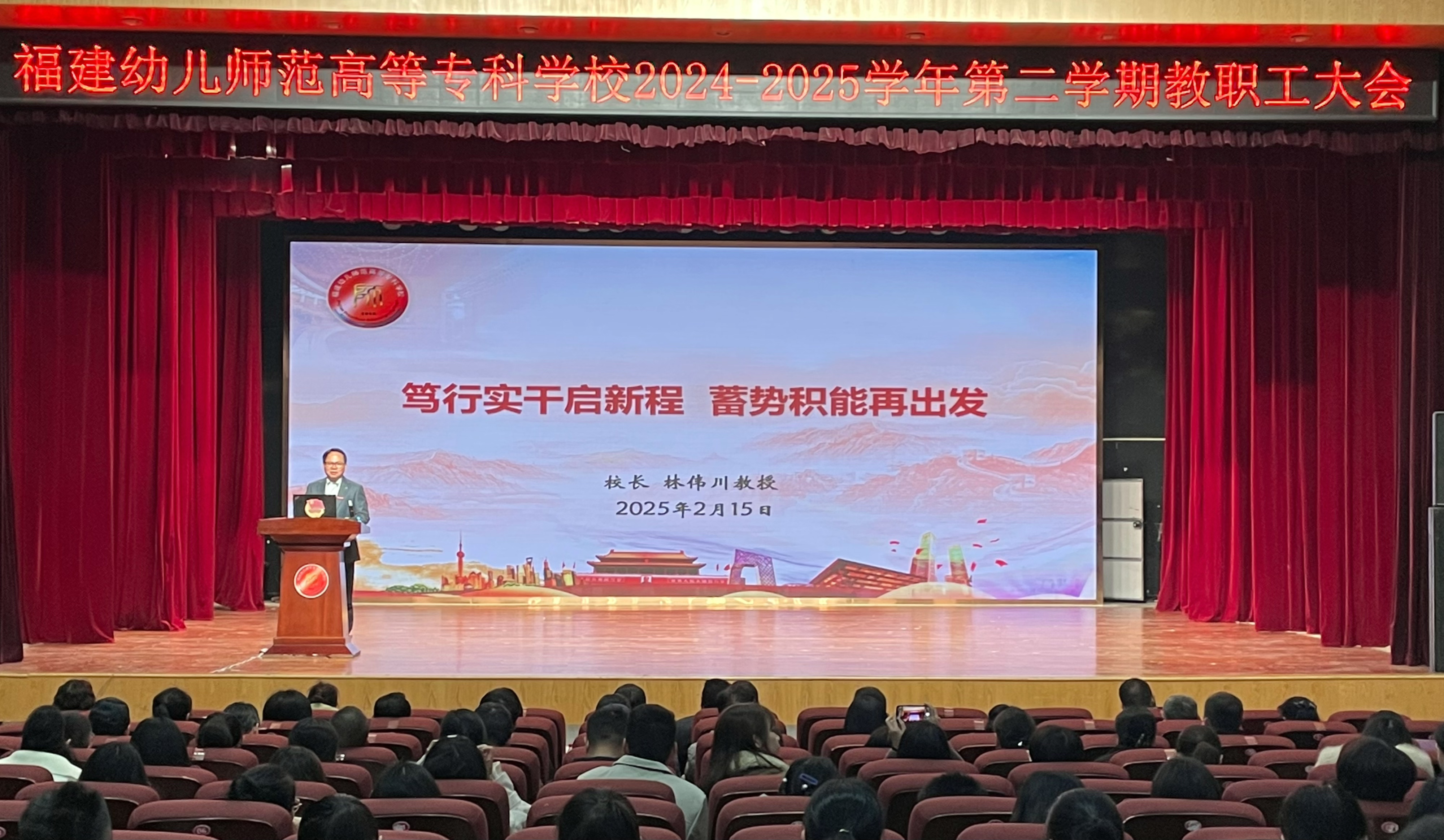 林偉川作了題為《篤行實(shí)干啟新程 蓄勢積能再出發(fā)》的講話。他指出,過去的一年,在校黨委的堅強(qiáng)領(lǐng)導(dǎo)下,學(xué)校繼續(xù)錨定“四梁八柱一中心”的戰(zhàn)略框架,大力弘揚(yáng)踐行“特別能吃苦、特別能戰(zhàn)斗、特別能奉獻(xiàn)”的福幼精神,以及黃世明老校長對幼兒師范教育事業(yè)的大愛精神,以巡視整改為抓手,接續(xù)奮斗、砥礪前行,學(xué)校事業(yè)發(fā)展取得一系列新進(jìn)展、新成效、新突破。他強(qiáng)調(diào),2025年是“十四五”規(guī)劃收官、“十五五”規(guī)劃謀劃之年,也是教育強(qiáng)國、教育強(qiáng)省建設(shè)全面布局、高位推進(jìn)之年,在新的一年里,我們要思考應(yīng)該如何打開新思路,塑造新動能,辦出特色、辦出質(zhì)量、辦出水平、辦出品牌,打造福幼辨識度。并從大力提升人才培養(yǎng)質(zhì)量、大力提升科研服務(wù)實(shí)力、大力提升開放辦學(xué)水平、大力提升現(xiàn)代治理能力四個方面系統(tǒng)部署了2025年重點(diǎn)工作,勉勵全校師生員工要心往一處想,力往一處使,共同開啟學(xué)校事業(yè)發(fā)展的新征程。
