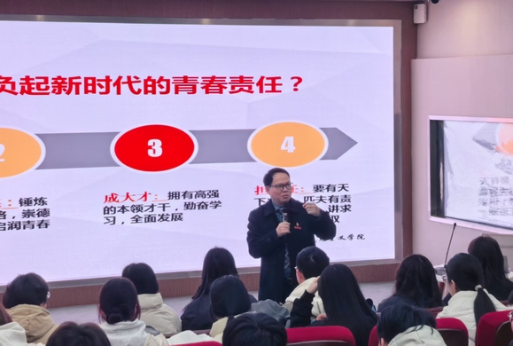 校長林偉川教授隨后登臺,緊扣 “新時代何為” 這一主題,圍繞 “立大志、明大德、成大才、擔(dān)大任” 四個維度,結(jié)合鮮活的案例和學(xué)生所學(xué)專業(yè)實(shí)際,勉勵同學(xué)們既要胸懷遠(yuǎn)大理想,又要腳踏實(shí)地,積極投身于實(shí)現(xiàn)中國夢的偉大事業(yè)中。他深情寄語同學(xué)們:“在人工智能技術(shù)迅猛發(fā)展、知識更新迭代加速的當(dāng)下,要善于借助 DeepSeek 等人工智能工具,學(xué)會尋找學(xué)習(xí)助力,汲取外界養(yǎng)分。新時代青年要牢記習(xí)近平總書記的殷切期望,勇挑歷史與時代的重?fù)?dān)。作為社會工作專業(yè)的學(xué)生,要爭做聽黨話、跟黨走的優(yōu)秀社會工作者,向身邊榜樣看齊,從自身做起,從現(xiàn)在做起,將個人成長與社會發(fā)展緊密融合,為實(shí)現(xiàn)中國夢貢獻(xiàn)青春力量。” 校長的殷切話語為同學(xué)們指明了前行方向,激發(fā)了大家的使命感與責(zé)任感。