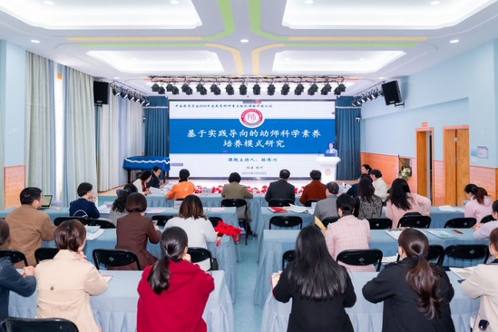 會議伊始,科研處處長胥文玲介紹了與會領導、專家及來賓。中國教育學會常務理事陳峰教授代表中國教育學會宣讀了課題立項通知,標志著該課題正式進入研究實施階段。課題負責人林偉川隨后就研究背景、目標、內容及方法進行了詳細陳述,強調“實踐導向”在幼師科學素養(yǎng)培養(yǎng)中的核心作用,并提出通過多元路徑探索幼師培養(yǎng)新模式。課題組成員結合具體分工,補充闡述了研究實施方案與面臨的問題。