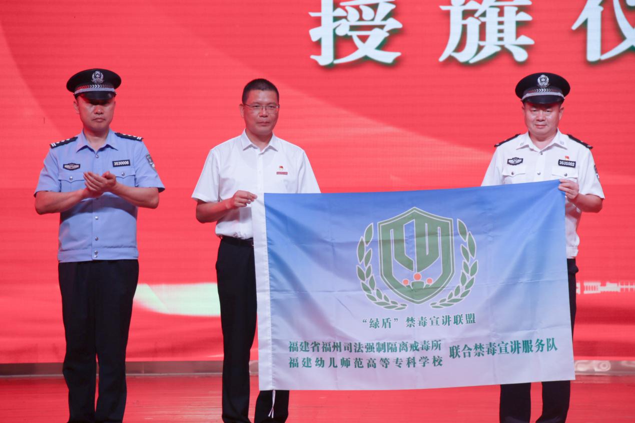 福建省司法廳戒毒管理局為學(xué)校和福州司法強(qiáng)制隔離戒毒所授予“綠盾聯(lián)合禁毒宣講服務(wù)隊(duì)”隊(duì)旗,雙方共同組建禁毒宣講志愿服務(wù)隊(duì)伍,圍繞“禁毒知識(shí)課堂”、“禁毒志愿幫扶救助服務(wù)”等活動(dòng),常態(tài)化開(kāi)展禁毒知識(shí)普及教育,助力青少年遠(yuǎn)離毒品,共創(chuàng)美好人生。
