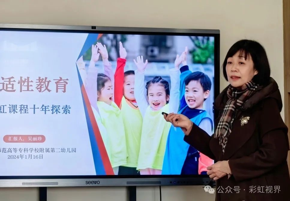吳麗珍園長介紹了我園的適性教育理念下彩虹課程的建設歷程,讓團隊成員對幼兒園的辦園文化、教育思想有了較深入的了解,感受我園始終以支持性環(huán)境研究為載體,助推幼兒深度學習與游戲,在自主學習中獲得運動挑戰(zhàn)、表達表現(xiàn)、交往合作、觀察探究、審美創(chuàng)造等多元發(fā)展,彰顯讓每位幼兒綻放生命光彩的園本課程理念。