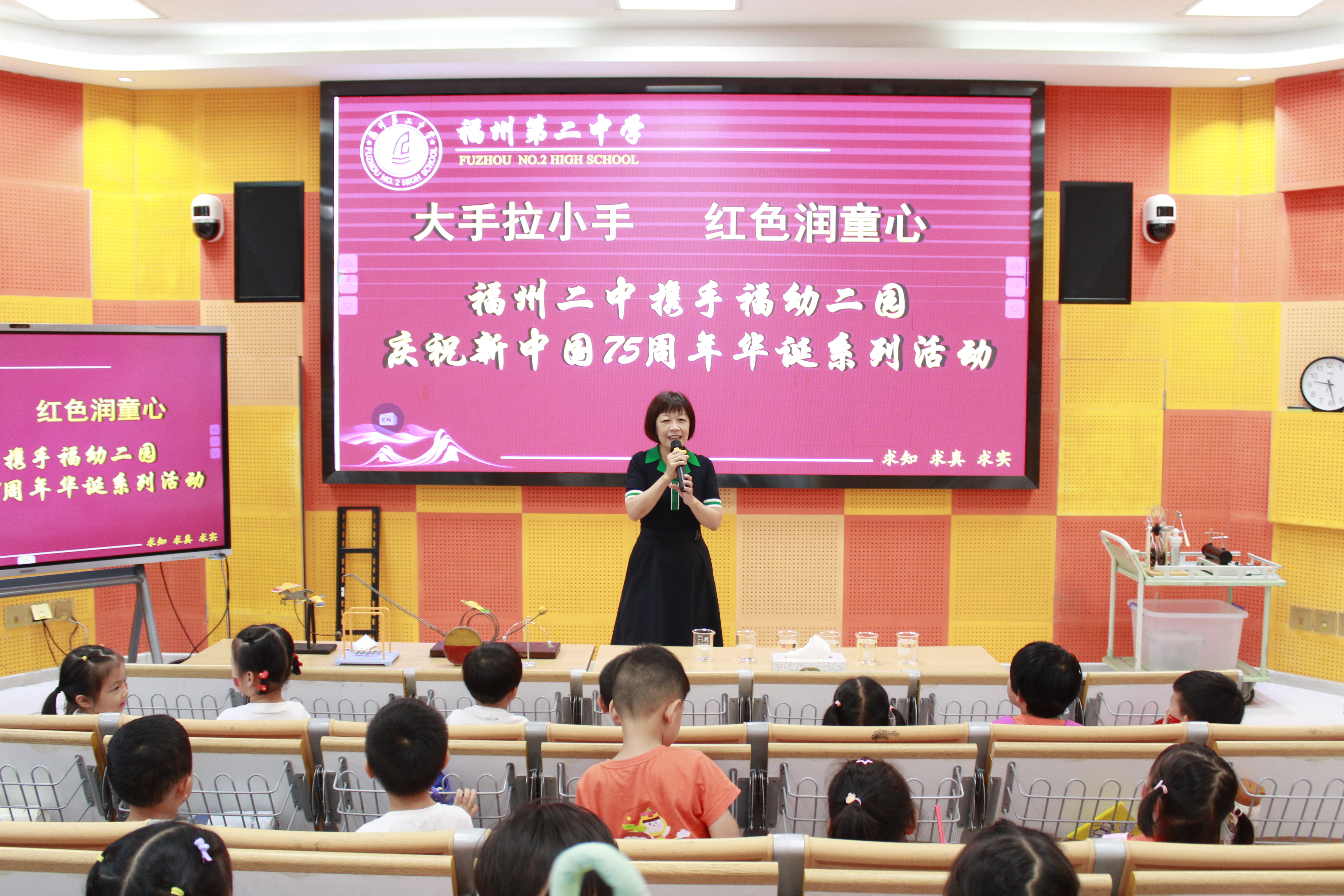 為了創(chuàng)造條件,讓幼兒從知道長征到體驗長征,教師充分利用周圍的社區(qū)資源,鼓勵幼兒背上小書包、帶上飲用水,獨立走一段長長的路!9月29日這天,中班小朋友們集合在大操場,做了充分的準(zhǔn)備后,唱著紅歌出發(fā)啦!到達(dá)福州二中后,在二中老師親切的帶領(lǐng)下,孩子們了解了福州二中的百年辦學(xué)歷史。在大禮堂里,孩子們仔細(xì)聆聽了我們吳麗珍園長與福州二中王洪泠黨委書記向孩子們介紹了本次活動的意義。各班的孩子們還唱起了自己學(xué)到的紅色歌曲,在童真的聲音演繹下,愛國似乎變得具像化:愛國就是在我的國家自豪地唱我們的歌!
