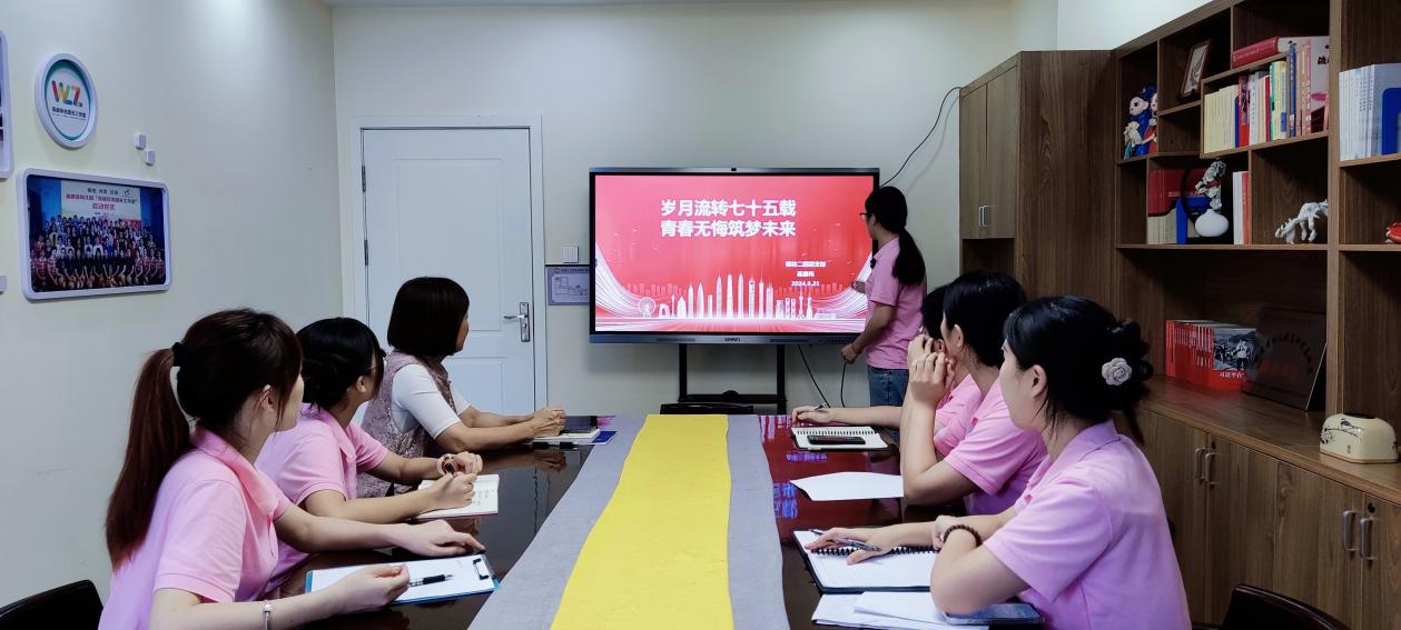 在中華人民共和國成立75周年之際,福幼二園團(tuán)支部開展主題為歲月流轉(zhuǎn)七十五載,青春無悔筑夢未來的主題團(tuán)課活動。旨在回顧祖國的光輝歷程,激勵新時代青年教師勇于擔(dān)當(dāng),積極投身于教育事業(yè)。