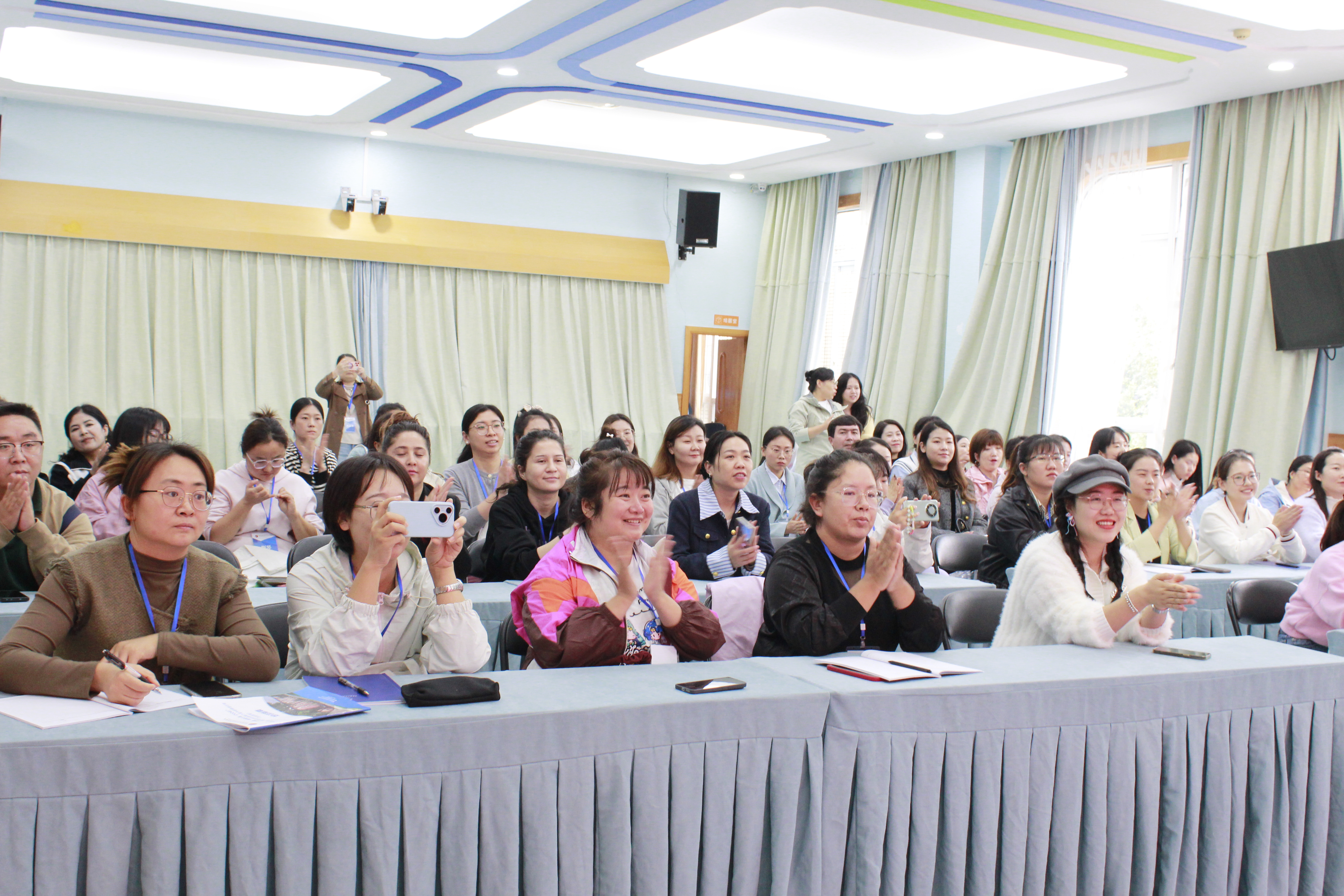 吳麗珍園長(zhǎng)的專題講座《適性教育理念下的園本課程構(gòu)建與實(shí)施》開啟了學(xué)員們的理念之思,從適性教育的內(nèi)涵到彩虹課程的構(gòu)建,打開了學(xué)員們的視野與思路。福幼二園的吳端萍副園長(zhǎng)、朱麗芬主任、何圣予主任、宋菲燕副主任分別從幼兒園游戲全環(huán)境的創(chuàng)設(shè)要素、集中教學(xué)的有效性、游戲中的幼兒素養(yǎng)培養(yǎng)等方面,精心思考講座內(nèi)容,并結(jié)合學(xué)員們的關(guān)注點(diǎn)、思考點(diǎn)、問題點(diǎn)展開積極互動(dòng),介紹了我園課程改革中的新理念、新途徑、新策略。