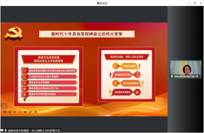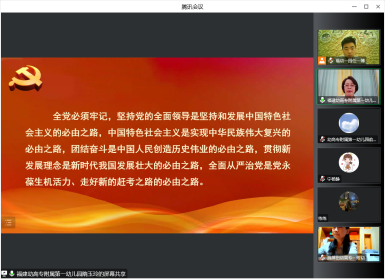 為積極響應(yīng)校黨委關(guān)于深入學(xué)習(xí)黨的二十大的工作部署,廣泛開展學(xué)習(xí)教育與宣傳活動,我園黨支部在全體師幼居家防疫的特殊時期,于10月27日上午通過騰訊會議的方式,組織全體黨員開展"同心聆聽微黨課 云端共話二十大"線上主題黨日活動,由支部書記隋玉玲園長為全體黨員解讀習(xí)近平總書記代表十九屆中央委員會在二十大開幕會所作的工作報告。