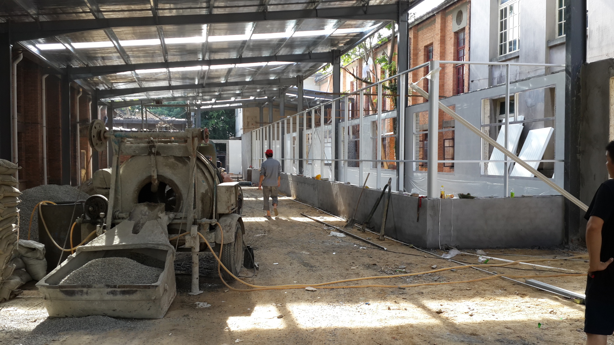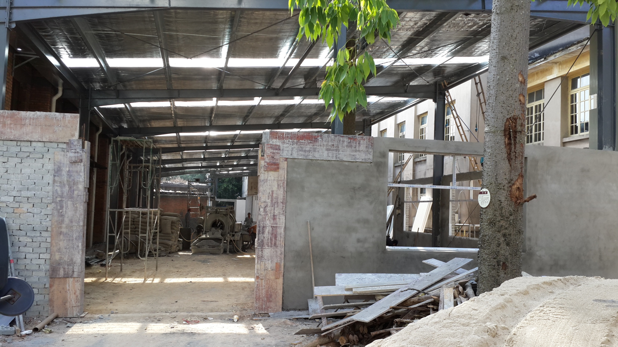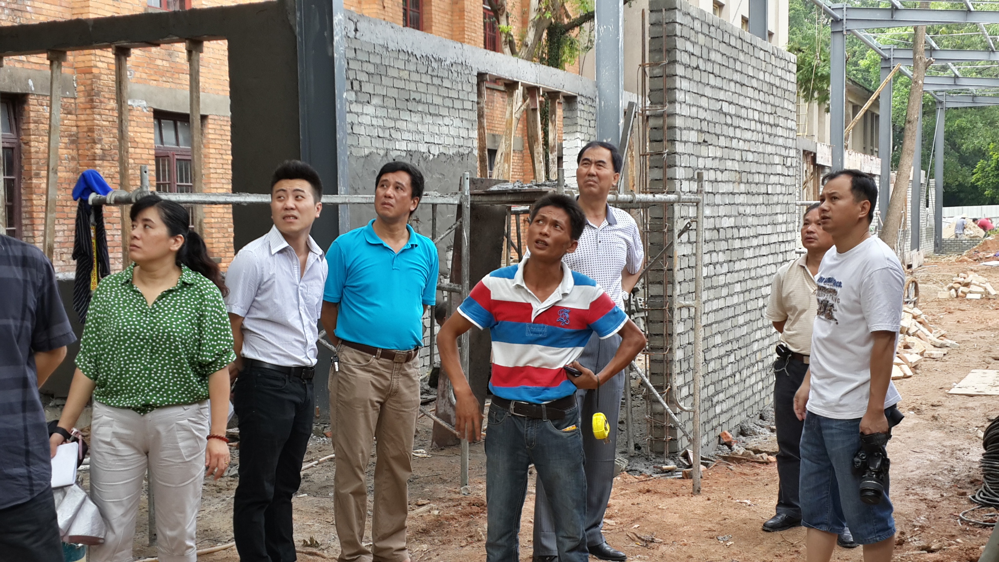 此次過渡食堂建設(shè)由后勤管理處負(fù)責(zé),項目施工難度大,要求高,時間緊,又恰逢酷暑季節(jié),給現(xiàn)場施工和管理工作帶來了不小的考驗。為確保施工質(zhì)量和進(jìn)度,徐京生副校長經(jīng)常冒著酷暑帶領(lǐng)后勤處相關(guān)人員到現(xiàn)場視察、指導(dǎo)工作。徐副校長要求施工方嚴(yán)格按照工程進(jìn)度施工,保質(zhì)保量完成施工任務(wù),確保過渡食堂新學(xué)期能如期投入使用。