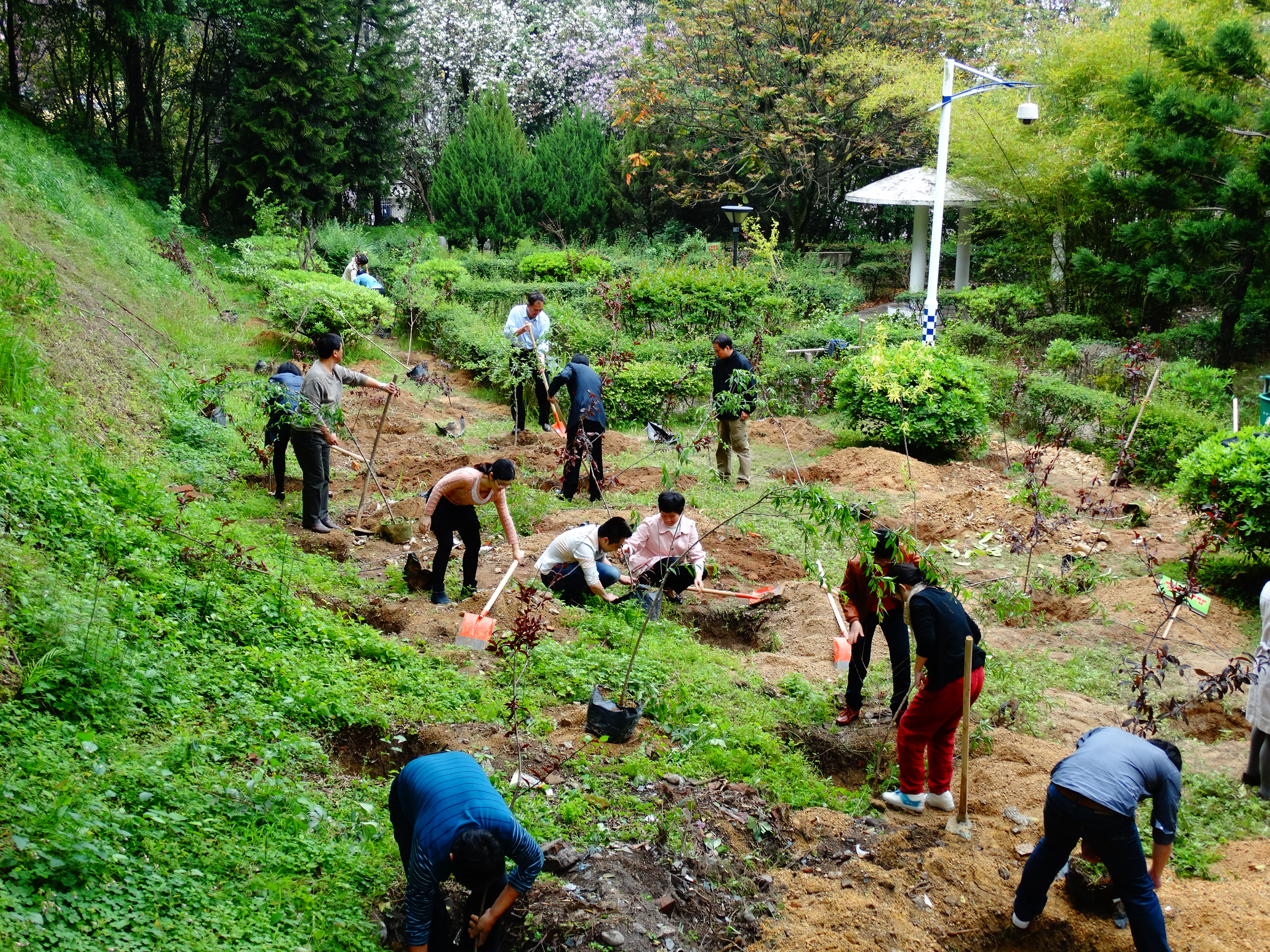 2014年4月23日下午,機(jī)關(guān)黨總支第五黨支部開(kāi)展支部活動(dòng),組織支部全體黨員參加義務(wù)勞動(dòng),與校園管理科勤雜工作人員一起植樹(shù)。在圖書(shū)館旁的萬(wàn)卷園種植30多棵桃樹(shù),在系部辦公樓后邊種植黃金寶3000多棵。