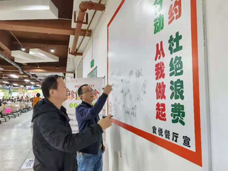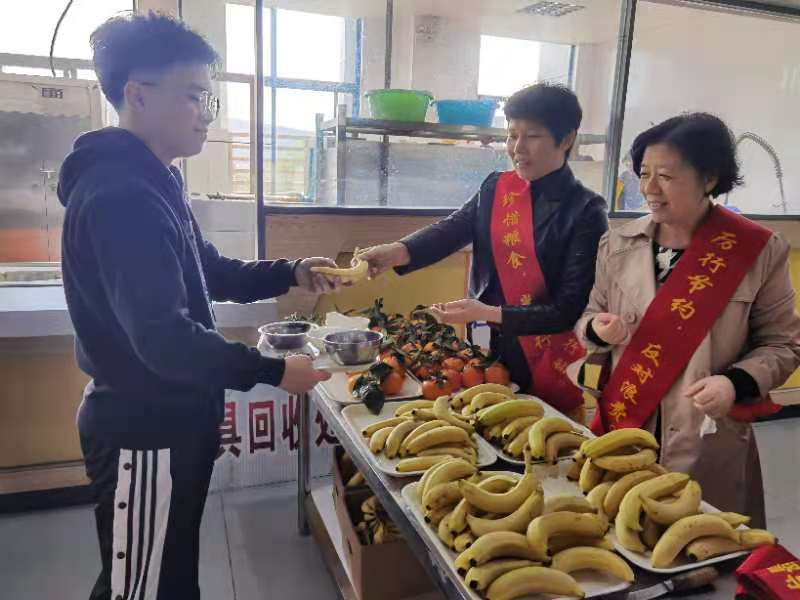 12月2日中午,機關第五黨支部在倉山校區(qū)綜合樓食堂開展“光盤行動 杜絕舌尖上的浪費”主題黨日活動。支部黨員除了自身自覺履行光盤行動外,主動與食悅餐廳和立品餐廳合作,共同開展宣傳工作。食堂經營者在餐廳醒目位置懸掛宣傳標語,支部黨員分散在餐廳入口、用餐區(qū)等各處,引導用餐人員共同踐行光盤行為。同時,在餐具回收區(qū)設置攤位,對主動履行光盤行動的人員給予水果和用餐抵用券的獎勵。老師、同學們積極主動參與本次活動,讓“光盤”從一句口號逐漸成為習慣。