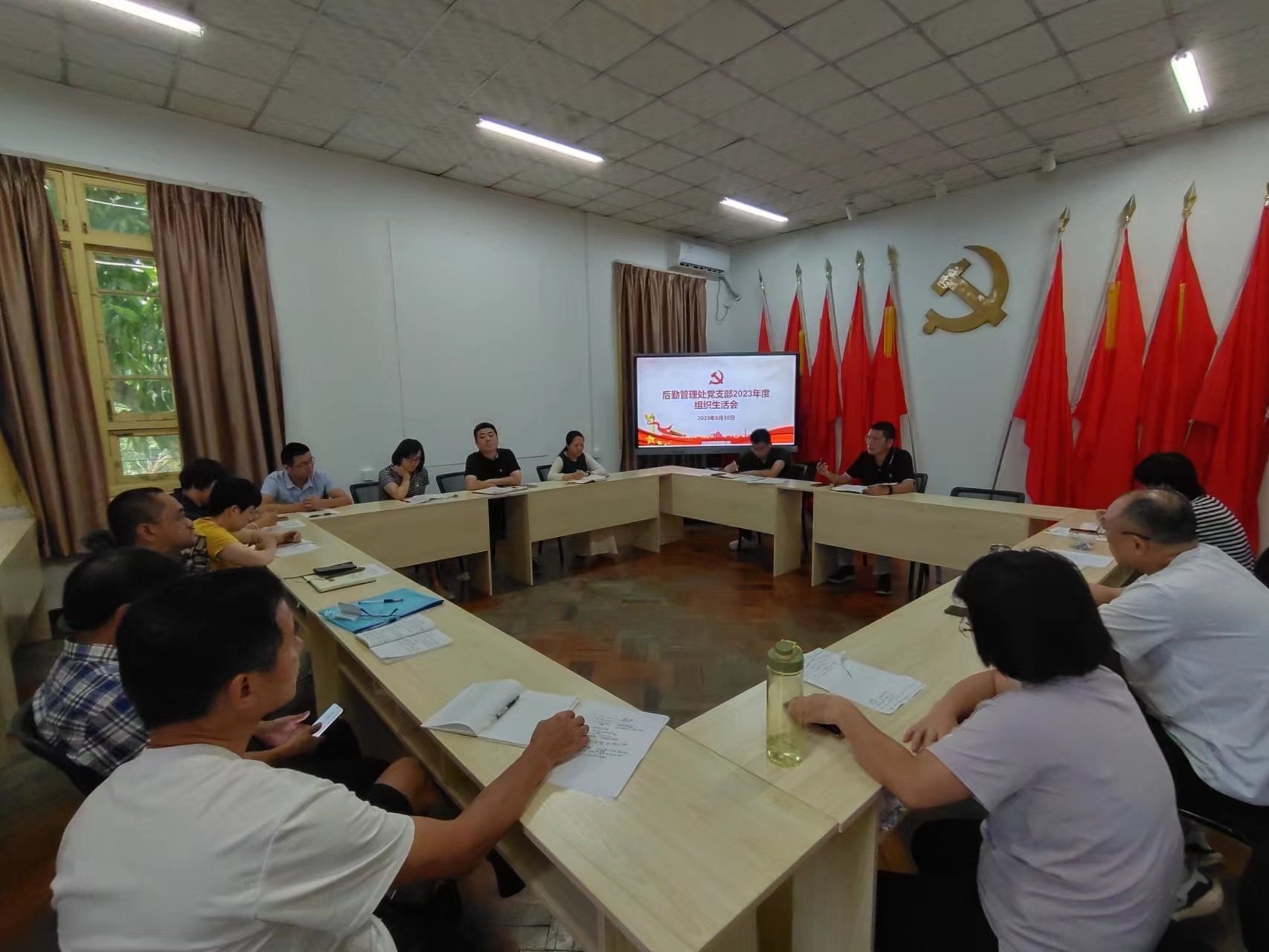 2023年8月30日上午,后勤處黨支部召開主題教育專題組織生活會(huì)。會(huì)前,黨支部認(rèn)真制定方案,組織黨員干部學(xué)習(xí)領(lǐng)會(huì)習(xí)近平總書記關(guān)于黨的建設(shè)的重要思想、關(guān)于嚴(yán)肅黨內(nèi)政治生活的重要講話和重要指示批示精神以及相關(guān)學(xué)習(xí)資料,扎實(shí)開展談心談話,認(rèn)真查擺突出問題,盤點(diǎn)檢視。會(huì)上,支部書記唐川通報(bào)了主題教育開展情況及上一年度組織生活查擺問題整改落實(shí)情況,并代表黨支部作對(duì)照檢查。接著,謝福仁副校長(zhǎng)帶頭作個(gè)人檢視剖析,接受評(píng)議。支部成員逐一開展批評(píng)和自我批評(píng)。會(huì)議緊扣主題,自我批評(píng)敢于揭短,相互批評(píng)客觀、實(shí)在,達(dá)到了凝聚共識(shí)、錘煉黨性、增進(jìn)團(tuán)結(jié)的目的。謝福仁副校長(zhǎng)作總結(jié)發(fā)言,他要求支部黨員們會(huì)后一要繼續(xù)深入推進(jìn)主題教育;二要結(jié)合自身崗位,工作中認(rèn)真抓好整改落實(shí),務(wù)求取得實(shí)效;三要吸取他人批評(píng)意見,及時(shí)改進(jìn)提高。