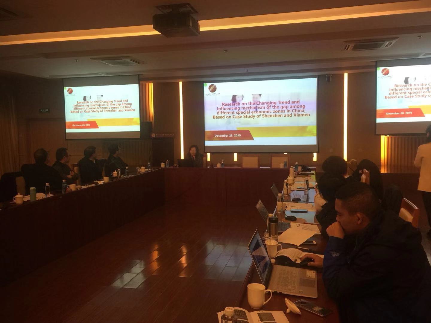 2019年12月28日,由中國社科院馬克思主義研究院主辦的"Notification of the 9th Seminar of the New Era New Exploration Forum"("新時代新探索論壇"第九屆學術專題研討會)在北京中國科學院生物物理研究所蛋白質科學中心501會議室隆重舉行。本次論壇主題為:"深圳的歷史、今天與未來——基于中國特色社會主義先行示范區(qū)的視角"。來自國內外對深圳經(jīng)濟特區(qū)40年發(fā)展有研究和感興趣的30多位中外學者參加了此次學術專題研討會。我校馬克思主義學院院長伊文婷教授,作為中國社科院研究生院2018級馬克思主義中國化專業(yè)在讀博士生,受邀在會上做了題為"Research on the Changing Trend and Influencing mechanism of the gap among different special economic zones in China, Based on Case Study of Shenzhen and Xiamen"(中國經(jīng)濟特區(qū)差距的變動趨勢與影響機制研究——以深圳和廈門為例)的全英文報告。