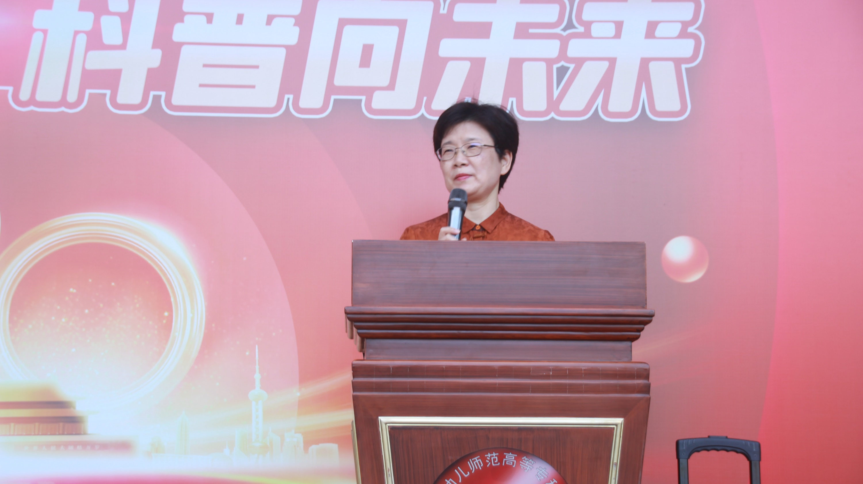 陳峰校長致辭指出,廣大師生應(yīng)以本次科普系列活動為契機(jī),提高政治站位,強(qiáng)化政治引領(lǐng),深入學(xué)習(xí)老一輩科學(xué)家的光輝事跡,努力踐行大師精神,在我校營造講科學(xué)、愛科學(xué)、學(xué)科學(xué)、用科學(xué)的良好氛圍,為促進(jìn)國家科技事業(yè)、實(shí)現(xiàn)中華民族偉大復(fù)興的"中國夢"貢獻(xiàn)福幼力量。