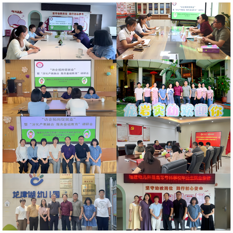 一行人先后前往漳州地區(qū)閩南師范大學附屬幼兒園、通北中心幼兒園、龍巖地區(qū)龍巖市實驗幼兒園、龍津湖幼兒園等用人單位訪企拓崗。