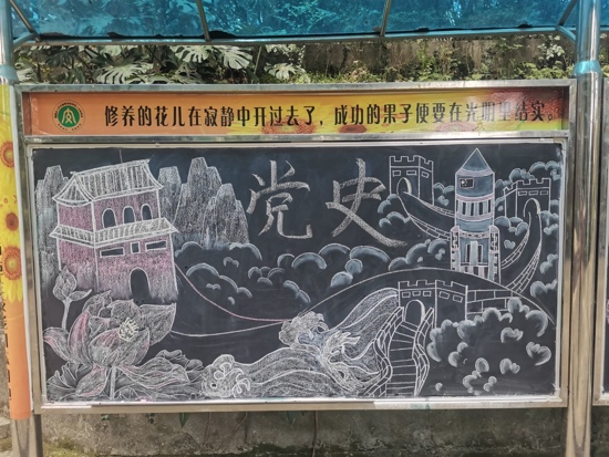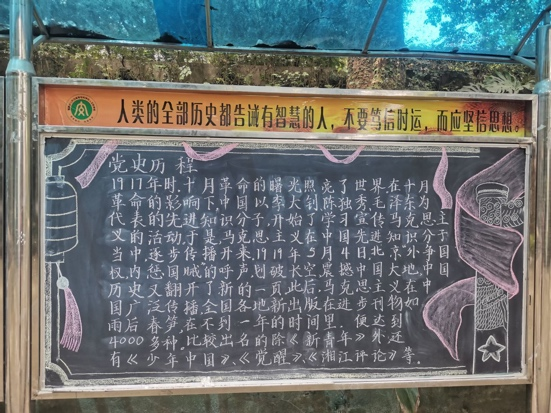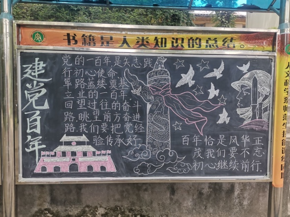 為了慶祝中國共產(chǎn)黨成立100周年,學(xué)黨史、感黨恩、跟黨走,人文科學(xué)學(xué)院組織各班開展了以“中國共產(chǎn)黨黨史”為主題的黑板報繪制活動。