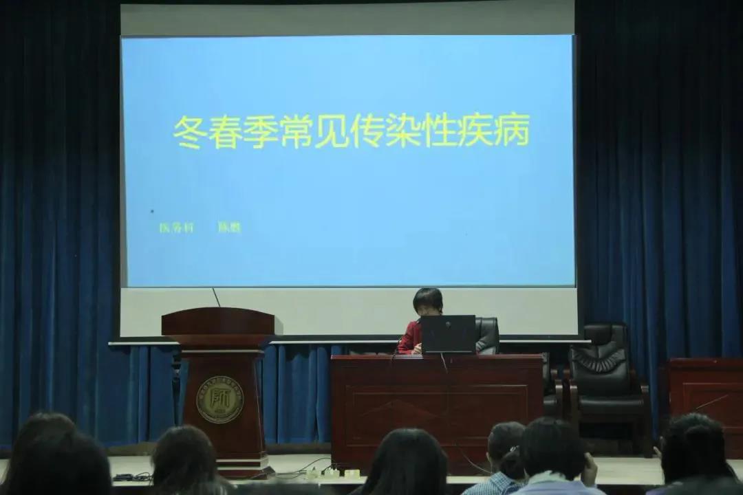3月31號(hào)晚上19點(diǎn),藝術(shù)教育學(xué)院在圖書(shū)報(bào)告廳開(kāi)展了冬春季常見(jiàn)傳染性疾病講座,本次講座邀請(qǐng)我校醫(yī)務(wù)室陳甦醫(yī)生為學(xué)生講解。冬春季節(jié)是疾病特別是傳染性疾病的多發(fā)季節(jié),常見(jiàn)的傳染性疾病包括:流感、水痘、帶狀皰疹、結(jié)核病、諾如病毒性腸炎等。這些傳染病大多可通過(guò)空氣、短距離飛沫或接觸呼吸道分泌物等途徑傳播。陳甦醫(yī)生對(duì)基本知識(shí)到病源傳染進(jìn)行了深入淺出的說(shuō)明,并詳細(xì)說(shuō)明了它們的臨床表現(xiàn)。通過(guò)舉例子的形式,使大家更清楚地了解傳染病如何產(chǎn)生和傳播的。