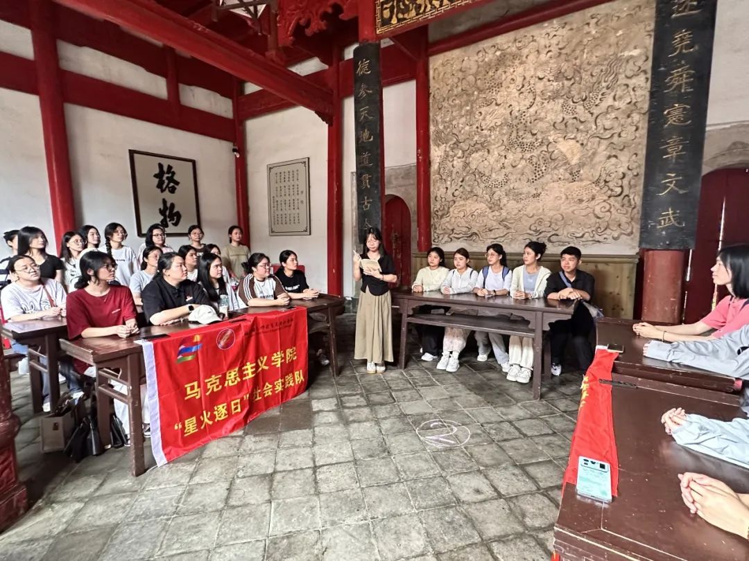 為深入學(xué)習(xí)貫徹習(xí)近平總書記思政課建設(shè)重要指示精神,引導(dǎo)青年學(xué)生感悟領(lǐng)袖思想偉力,用實(shí)際行動(dòng)奮力書寫為中國(guó)式現(xiàn)代化挺膺擔(dān)當(dāng)?shù)那啻浩隆?/span>2024年6月27日—28日,馬克思主義學(xué)院教師帶領(lǐng)“星火逐日”社會(huì)實(shí)踐隊(duì)赴武夷山燕子窠生態(tài)茶園、朱熹園和興賢書院等地開展以“追尋領(lǐng)袖足跡,感悟思想偉力”為主題的暑期社會(huì)實(shí)踐活動(dòng)。