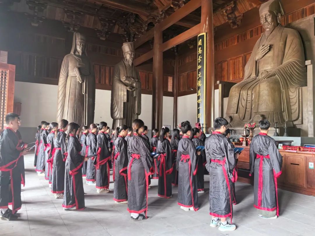 武夷山所在的南平市,是朱子理學(xué)萌芽、發(fā)展和集大成之地。在朱熹園考察時(shí),習(xí)近平總書記指出,要推動(dòng)中華優(yōu)秀傳統(tǒng)文化創(chuàng)造性轉(zhuǎn)化、創(chuàng)新性發(fā)展,以時(shí)代精神激活中華優(yōu)秀傳統(tǒng)文化的生命力。實(shí)踐隊(duì)員追尋領(lǐng)袖足跡,在朱熹園了解朱熹生平及理學(xué)研究等情況,探尋中華文明的自信之源。在朱文公廟,實(shí)踐隊(duì)員身著漢服,行高揖禮,向先賢朱子獻(xiàn)上束脩禮,并齊聲誦讀朱子家訓(xùn)感受中華優(yōu)秀傳統(tǒng)文化之韻,汲取奮進(jìn)新時(shí)代的精神力量。