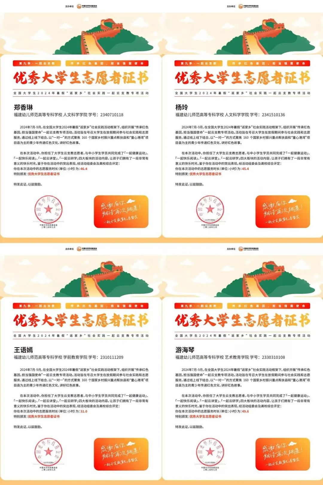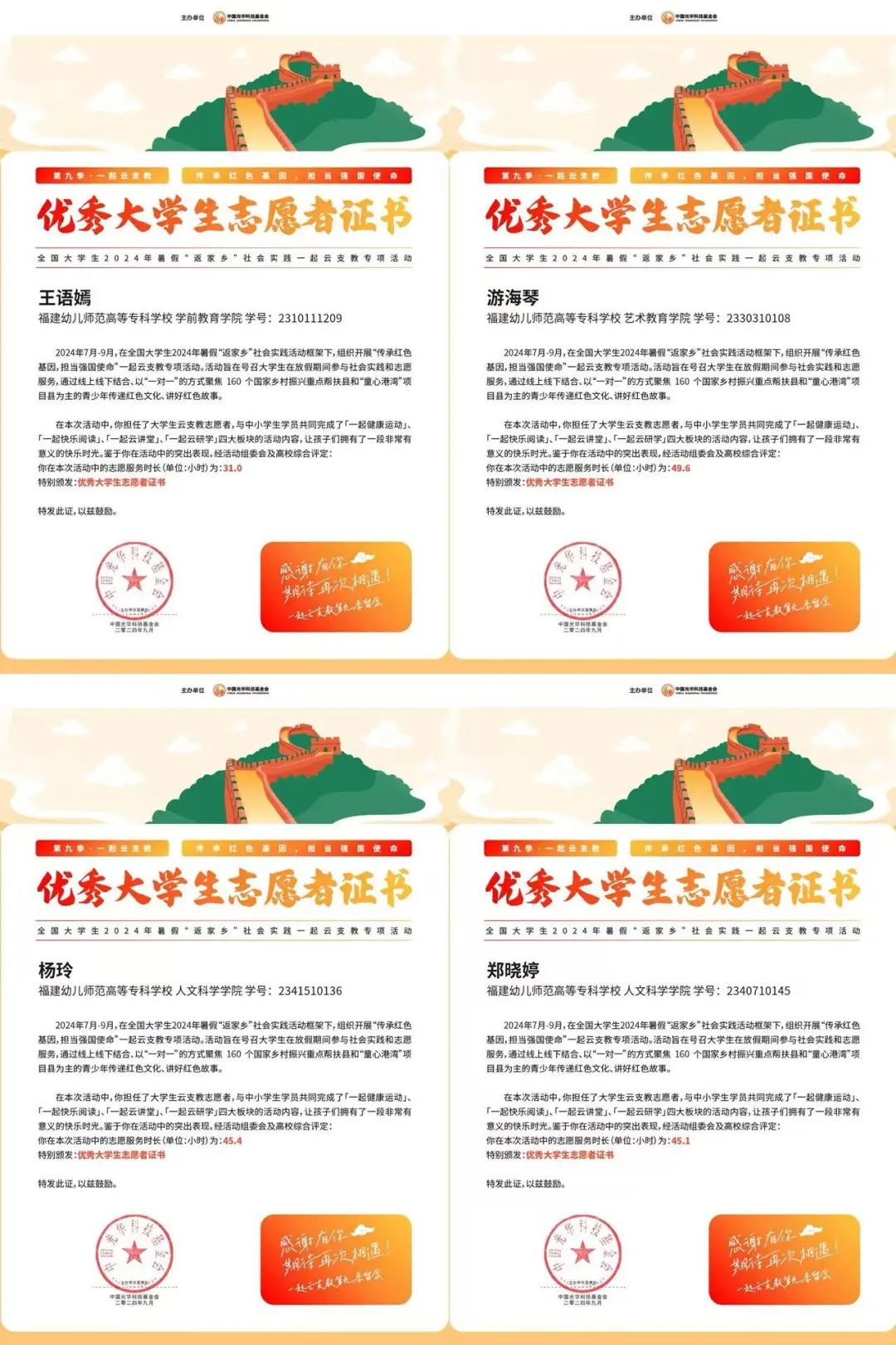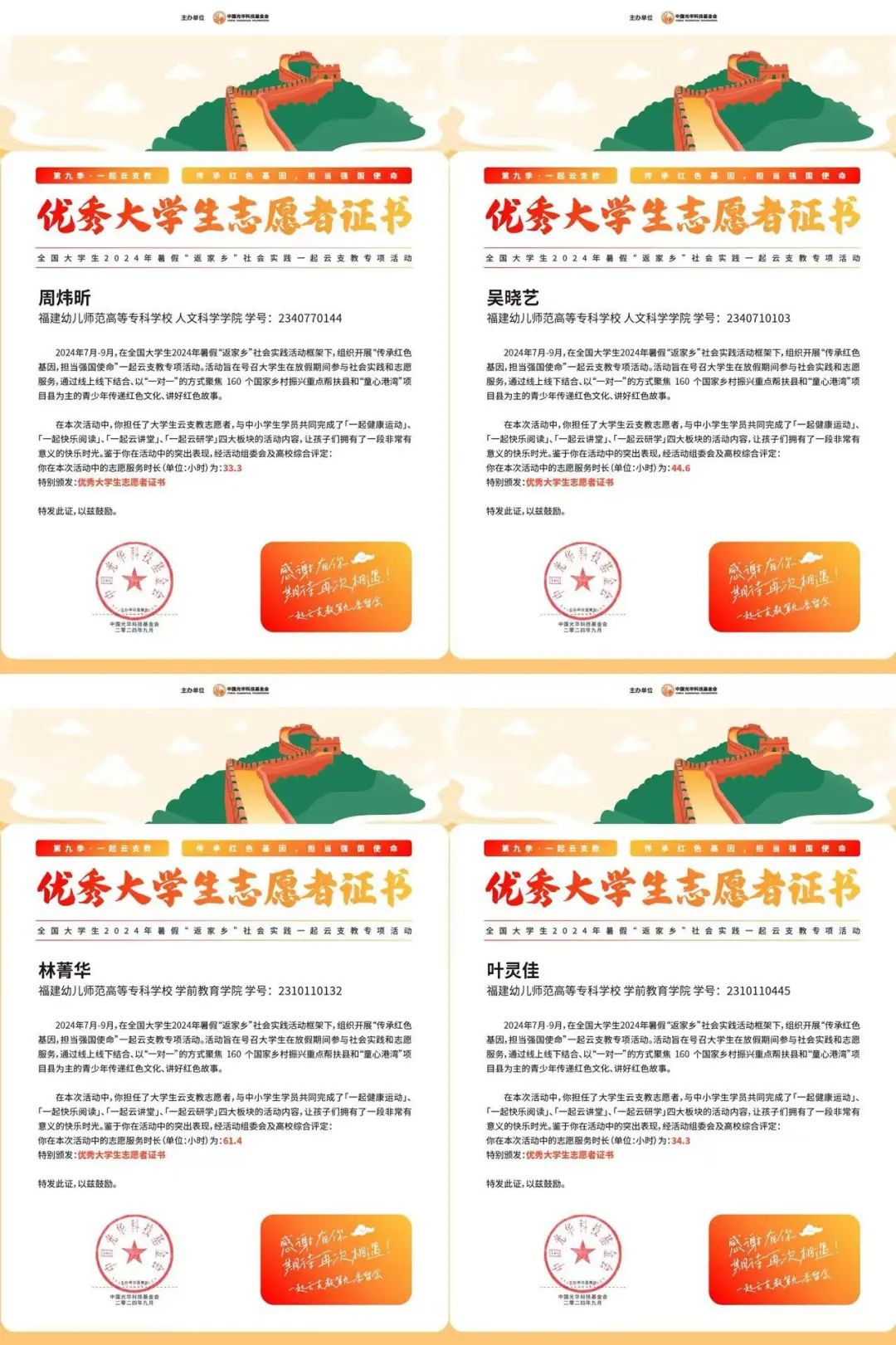 2024年7月至8月期間,我校開展為期一個(gè)月的“傳承紅色基因,擔(dān)當(dāng)強(qiáng)國使命”暑期“返家鄉(xiāng)”社會實(shí)踐專項(xiàng)活動(dòng)?;顒?dòng)內(nèi)容涵蓋【一起快樂閱讀】、【一起健康運(yùn)動(dòng)】、【一起云課堂】、【一起云研學(xué)】4個(gè)板塊。我校團(tuán)委書記胡華榮擔(dān)任指導(dǎo)老師,實(shí)踐團(tuán)隊(duì)111名志愿者通過線上及線下“云支教”的方式對接了160名中小學(xué)生。我校還與三明市尤溪縣西城中心小學(xué)合作,對口招募了近200個(gè)小學(xué)生。線上與線下累計(jì)志愿服務(wù)時(shí)長2770多小時(shí)。