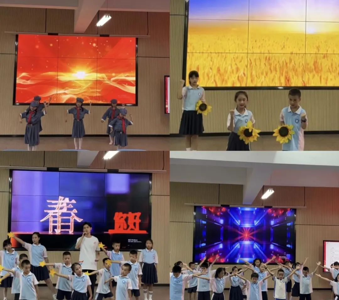 裊裊春光正當(dāng)時(shí),翩翩少年初長(zhǎng)成??诓虐嗟男∨笥褌兣c實(shí)踐隊(duì)員以朗誦與演唱結(jié)合的形式,一首《少年中國(guó)說》催人奮進(jìn)。他們將"為國(guó)奮斗"的錚錚誓言銘刻入心,以堅(jiān)定的童聲誦出當(dāng)代少年的愛國(guó)報(bào)國(guó)之志。另一個(gè)朗誦節(jié)目《今天,我們是初升的太陽》,演繹出少年的朝氣蓬勃、熱情洋溢,吟誦出對(duì)未來的憧憬。他們是祖國(guó)的未來,他們將成為繪就時(shí)代藍(lán)圖藝術(shù)家。